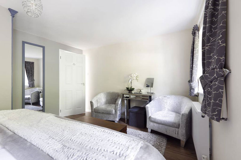 The back bedroom features a super kingsize bed, which can be configured as two single beds, if preferred. The front bedroom features a standard size double bed.